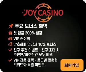 언제나 책임감 있고 절제된 건강한 이성적인 베팅 마인드를 유저 본인 스스로 굳건하게 유지하십시오. Joycasino와 Euro247 같은 메이저 시스템이 정성껏 제공하는 프리미엄 VIP 로열티 혜택과 365일 24시간 빈틈없이 친절한 CS 지원 서비스를 여러분의 든든한 무기로 삼아 스마트하게 활용하시기를 바랍니다. 여러분의 평범한 일상 속에 짜릿한 승리의 눈부신 순간들이 가장 안전하고 풍성하게 깃들기를 진심을 다해 기원합니다.